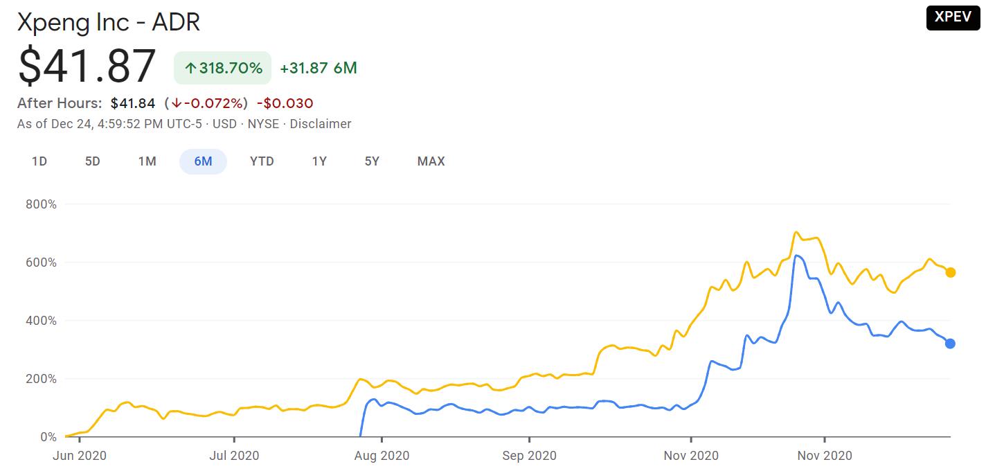 Xpeng is up over 80% since its IPO in late August, Nio is up 1,130% this year, and Li Auto is up 78% since its IPO in late July.