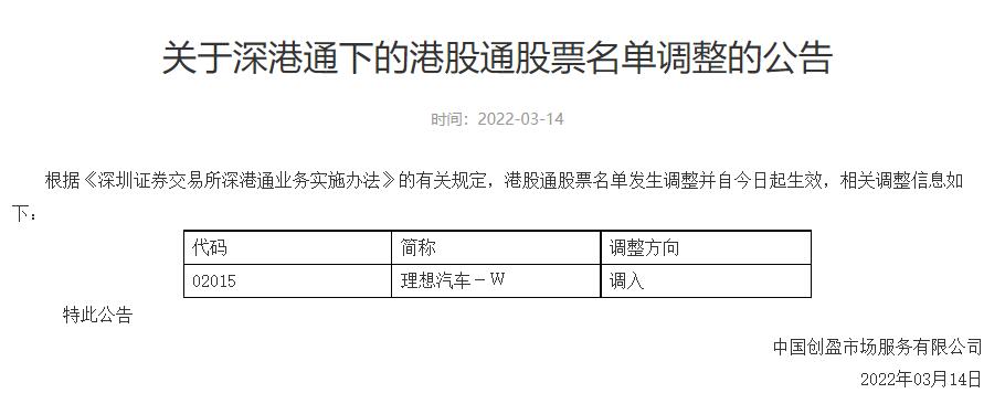 The Shenzhen Stock Exchange announced today that it has adjusted the list of Shenzhen-Hong Kong Stock Connect stocks to include Li Auto's Hong Kong-traded shares, effective today.