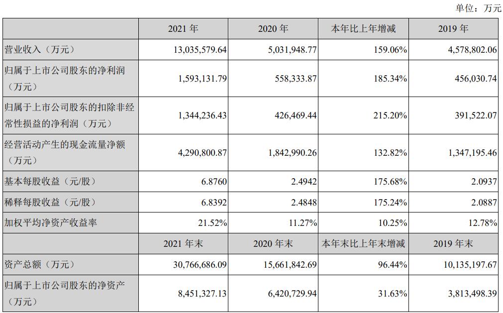 CATL posted revenue of 130.4 billion yuan last year, up 159.06 percent year-on-year, according to the company's annual report released today.