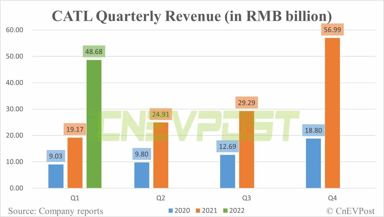 CATL's operating costs rose 199 percent year-on-year to RMB 41.6 billion in the first quarter due to rapidly rising upstream raw material prices.