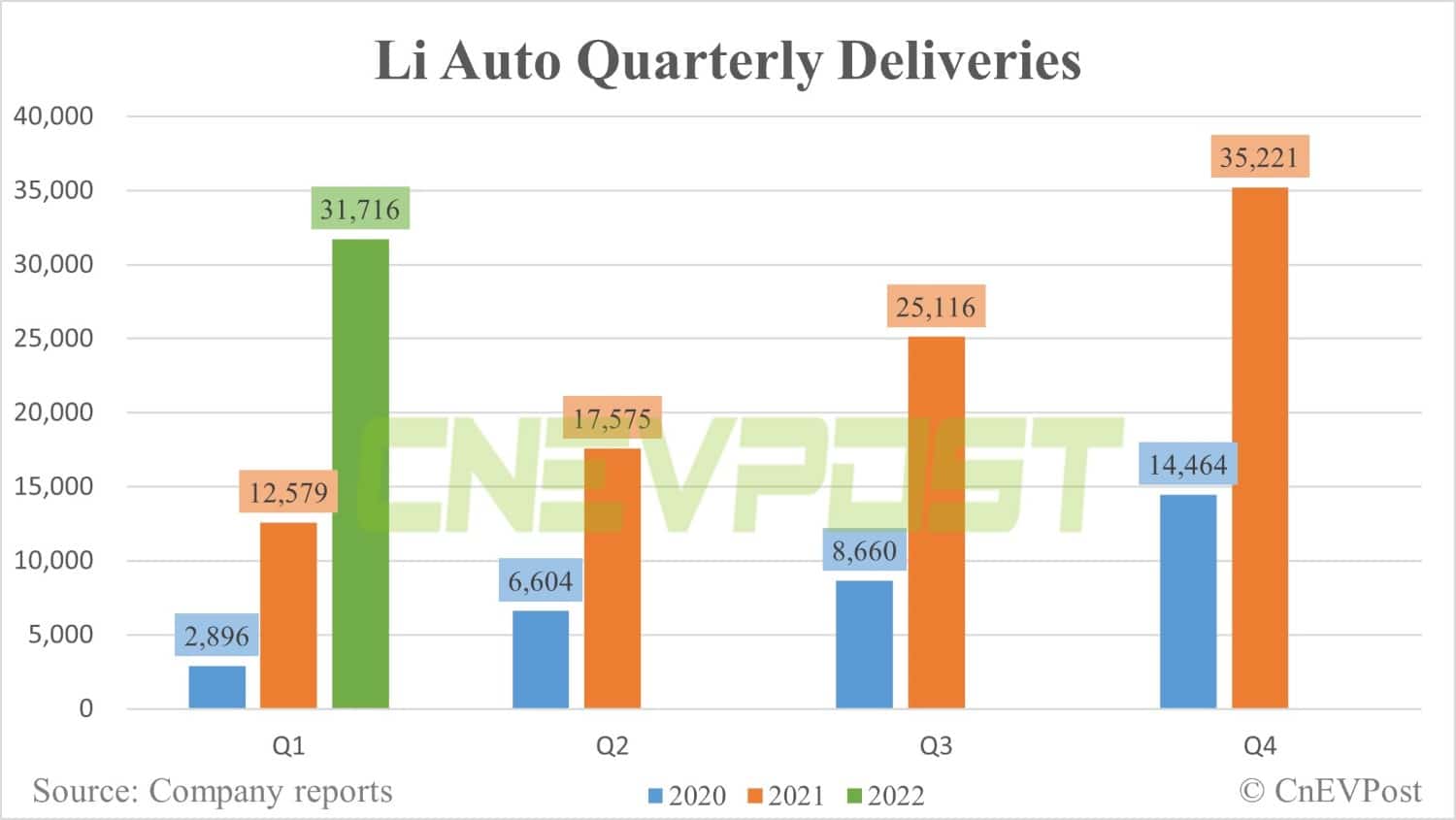 It delivered 31,716 vehicles in the first quarter, up 152.1 percent year-on-year and down 10 percent from the fourth quarter.