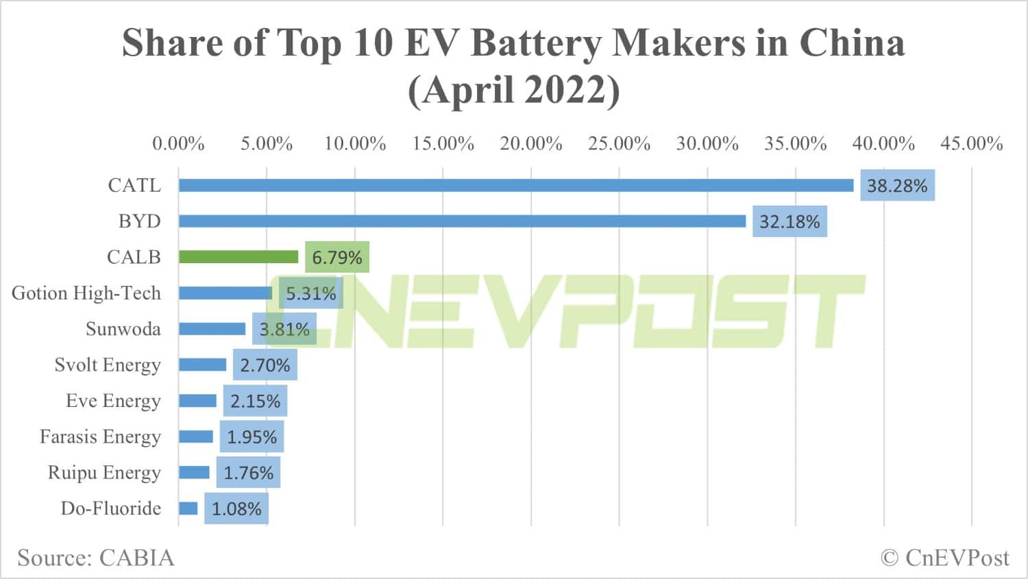 CALB is one of China's largest power battery suppliers, and data released yesterday by the China Automotive Battery Innovation Alliance showed that it installed 0.9 GWh in April, ranking third with a 6.79 percent share.