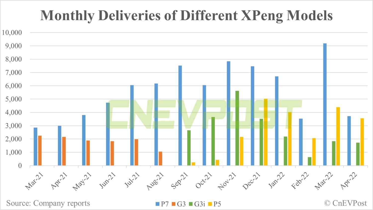 This delivery volume included 3,714 P7 flagship sedans, 3,564 P5 sedans, and 1,724 G3i and G3 compact SUV vehicles.