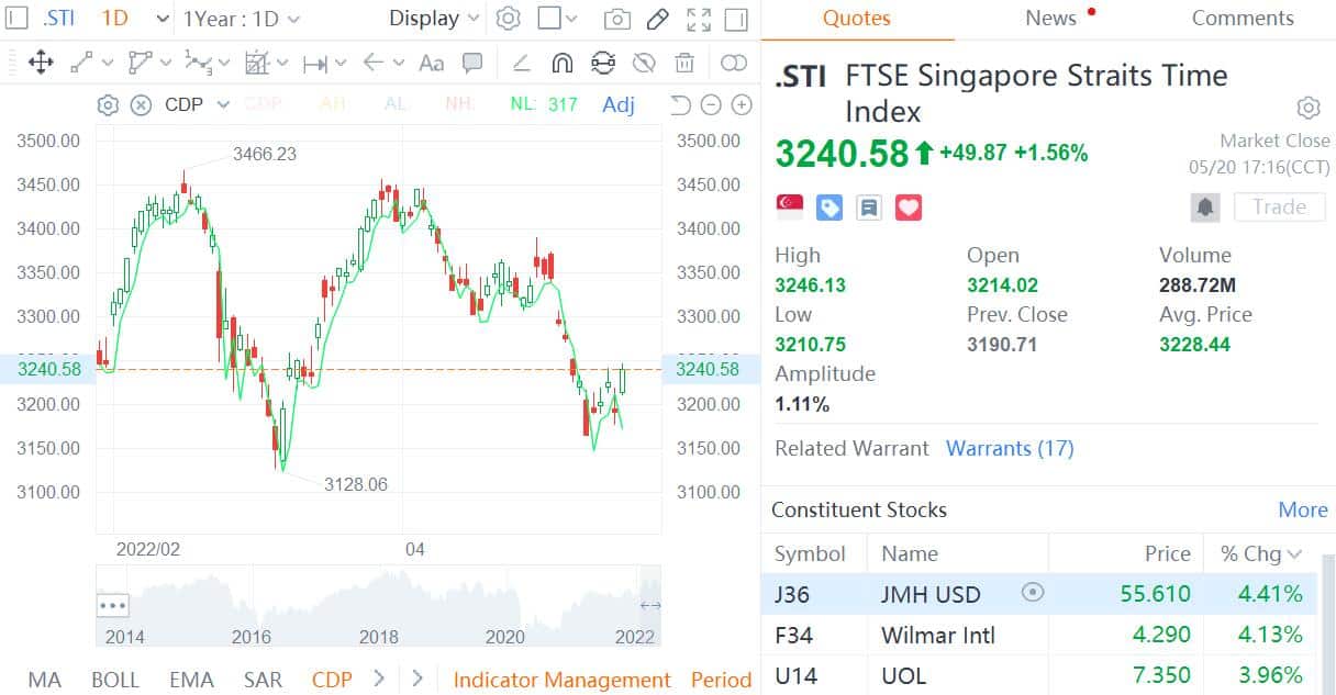 The benchmark FTSE Singapore Straits Times Index was up 1.56 percent at the close.