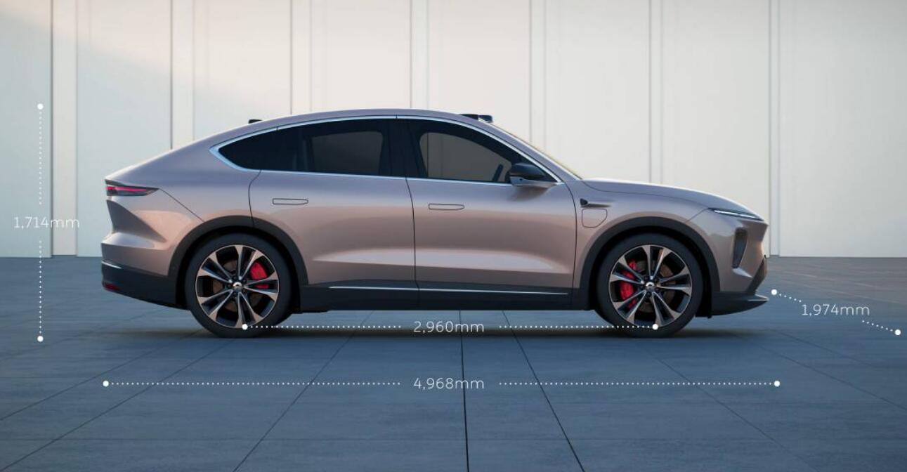 The EC7 is Nio's second coupe SUV after the EC6, measuring 4,968 mm in length, 1,974 mm in width and 1,714 mm in height, with a wheelbase of 2,960 mm.