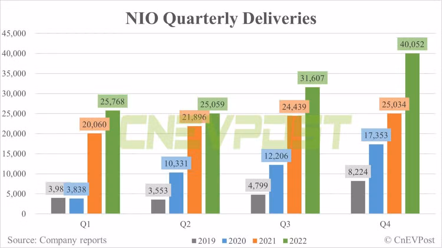 Previously released figures show that Nio delivered 40,052 vehicles in the fourth quarter, above the upper end of the range of its new guidance, which was revised downward at the end of December last year.