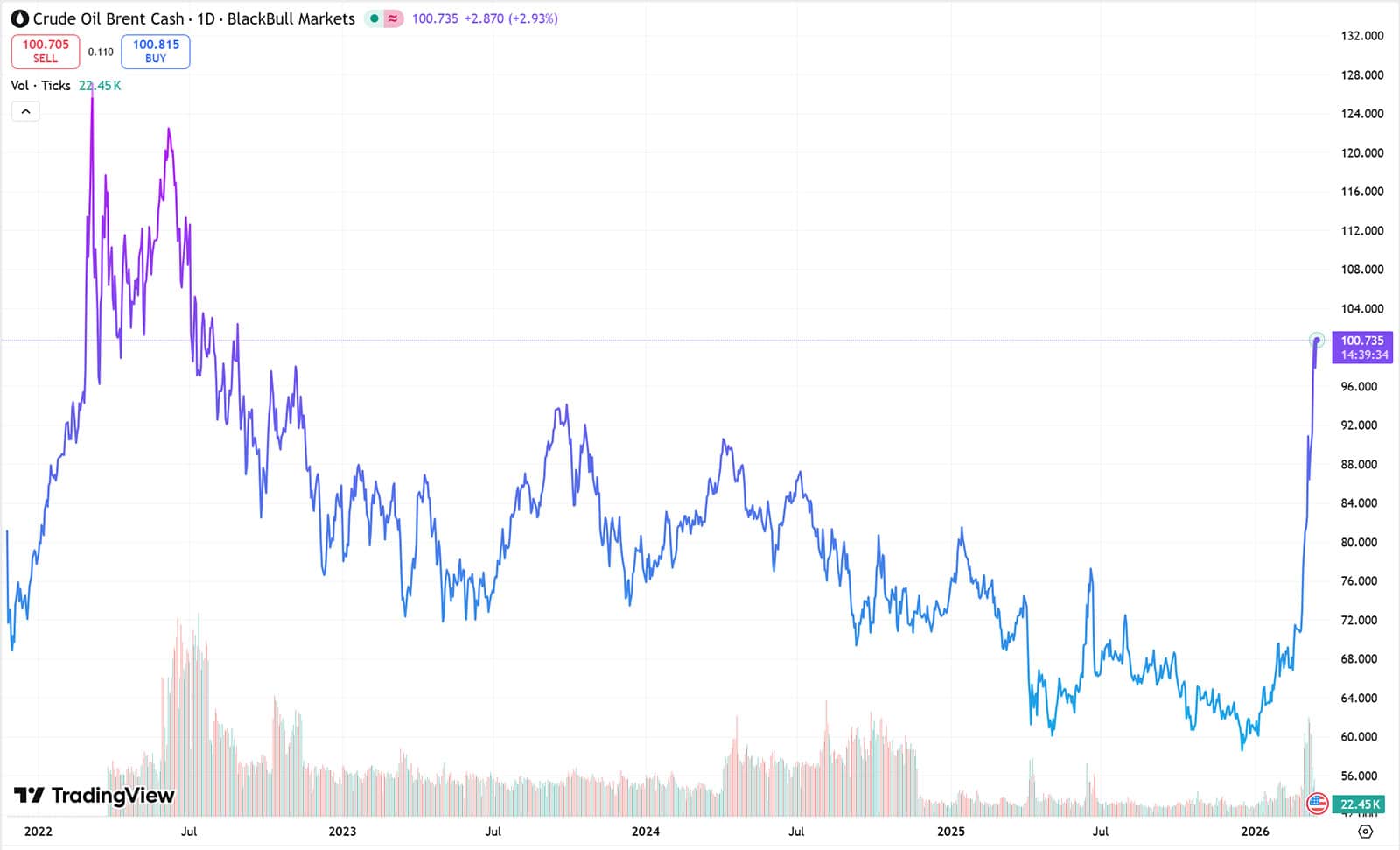 The global auto market is entering a period of uncertainty and volatility as Brent crude fluctuates near $100 a barrel, a team led by Deutsche Bank analyst Edison Yu wrote in a research note on Tuesday.