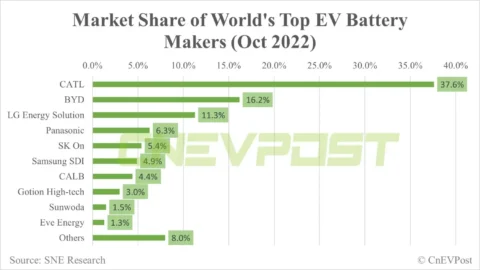 Global EV battery market share in Oct: CATL 37.6%, BYD 16.2%