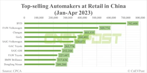 The Yuan family of models sold 39,160 units in April, making it the second highest-selling BYD model for the month.
