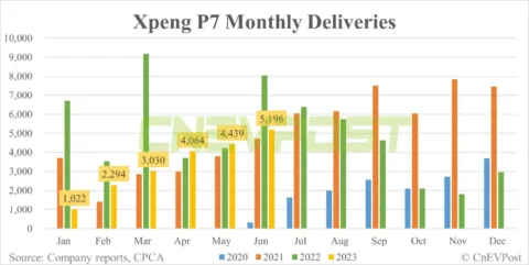 Xpeng Jun sales breakdown: P7 contributes 60.28% with 5,196 units